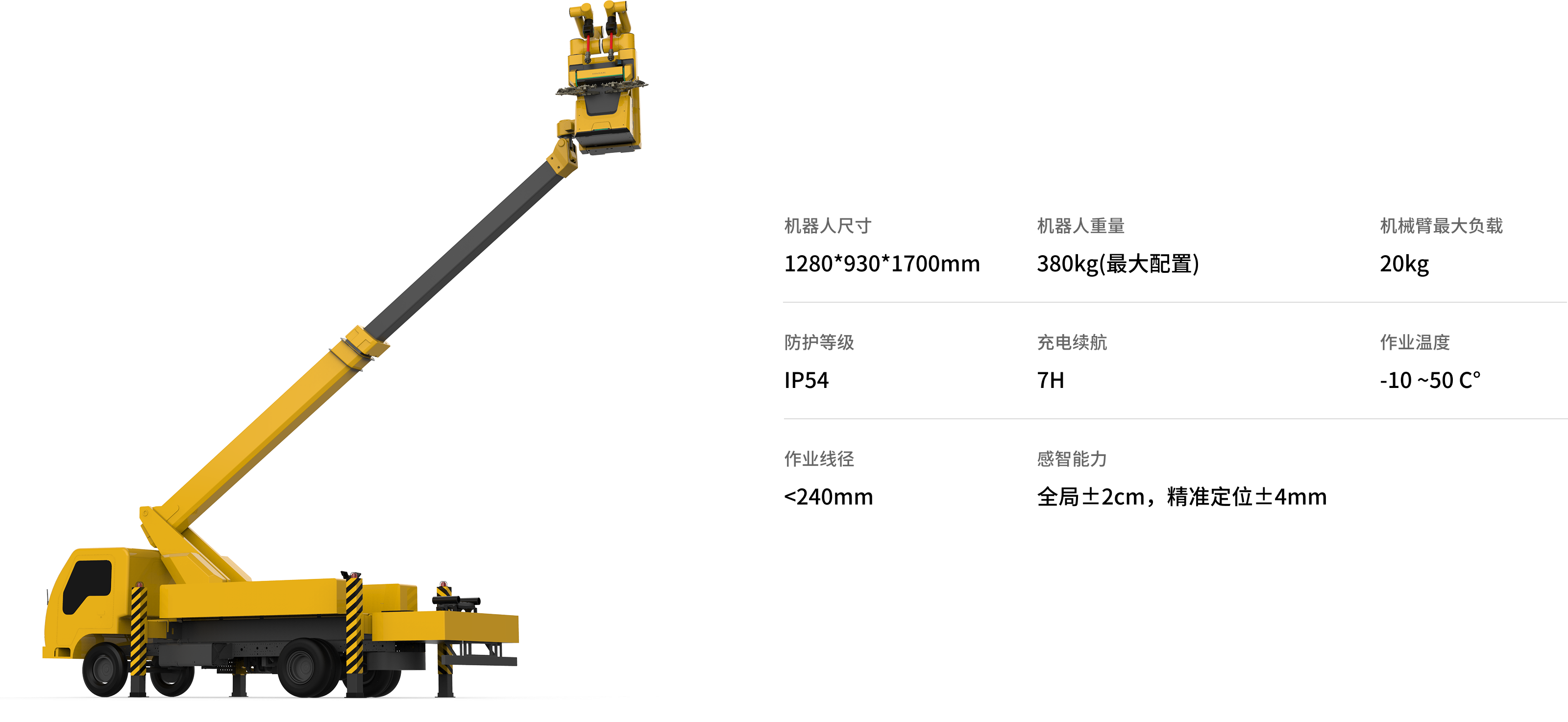新一代带电作业机器人适应10kV配网架空线路,实现10kV杆塔及线路带电运维检修作业,在手臂负载、作业高度、感知精度、作业方式进行增强设计。业务类型由单回路搭接、断线业务扩展到大跨距、大持重类作业场景,新增业务包括垂直双回线路搭接、旁路作业、安装过电压保护器等作业场景。